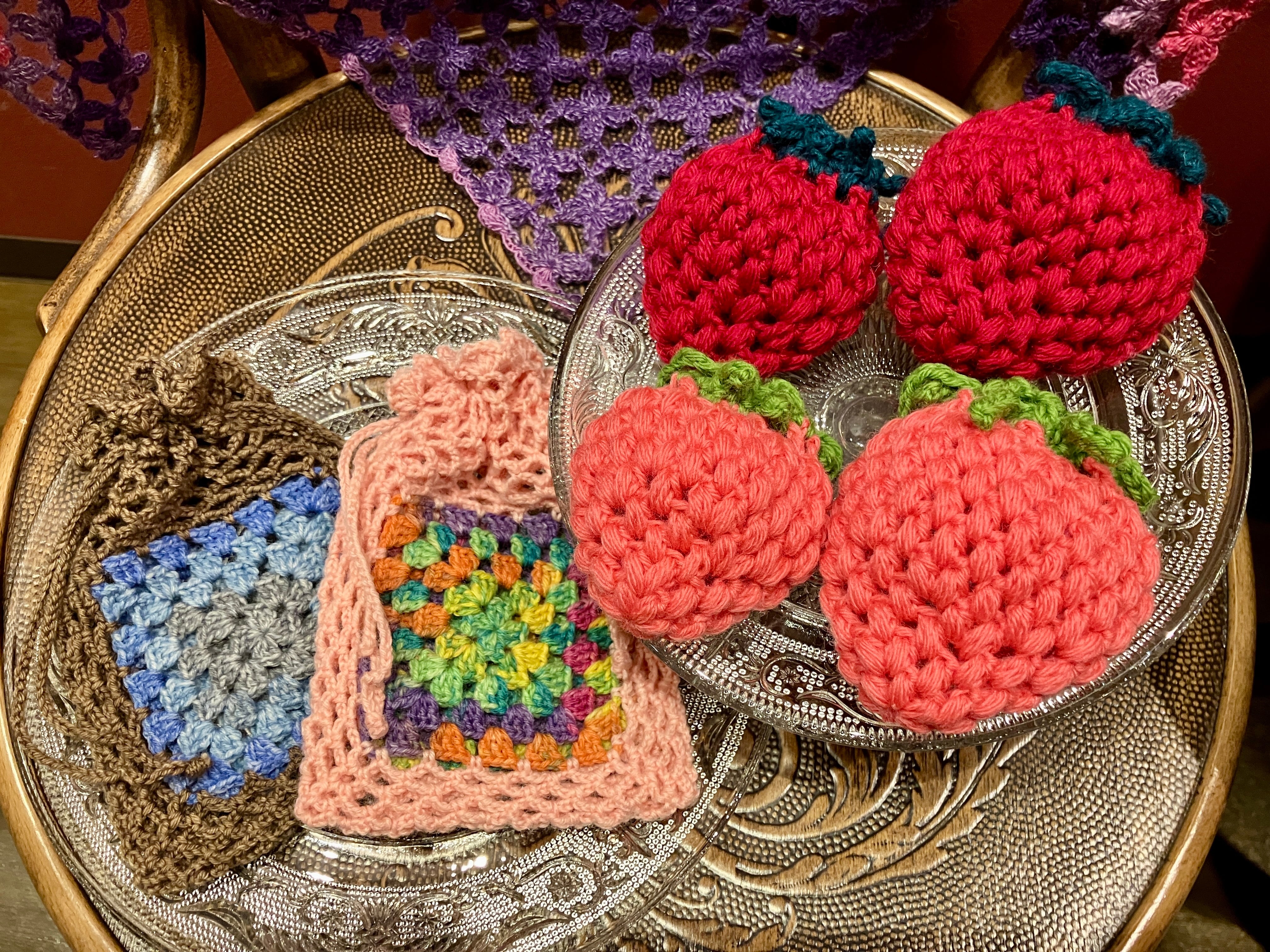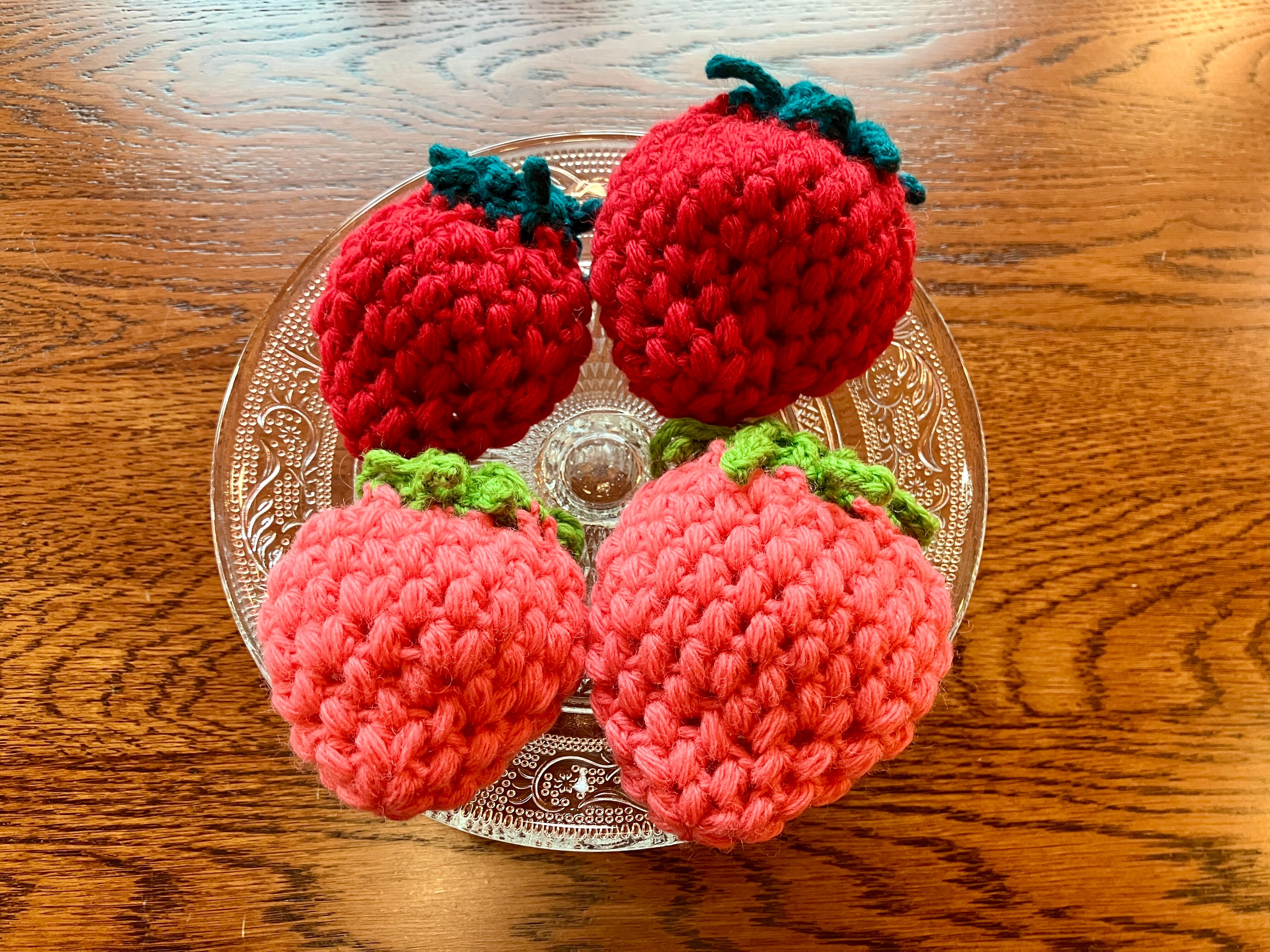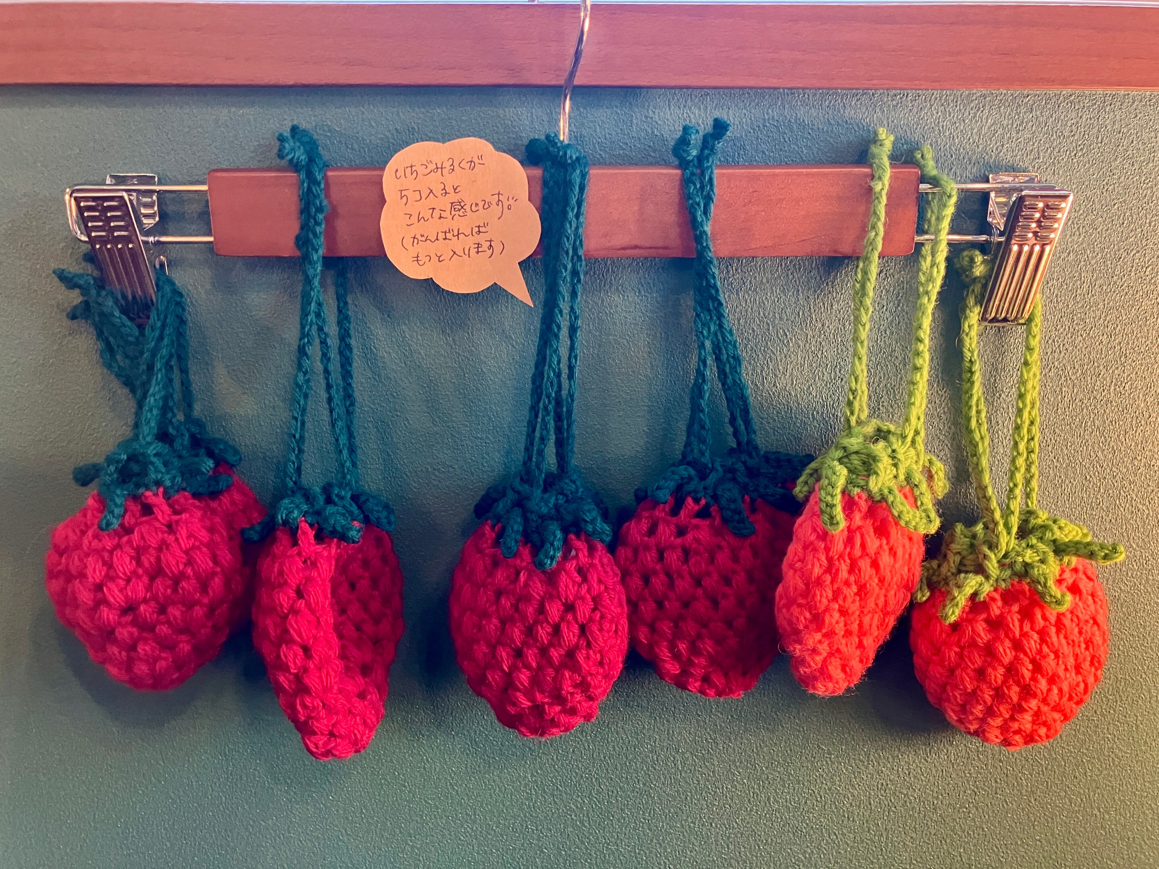 編み物作家コクシネルさんオリジナルの、とっても可愛い苺の巾着です!